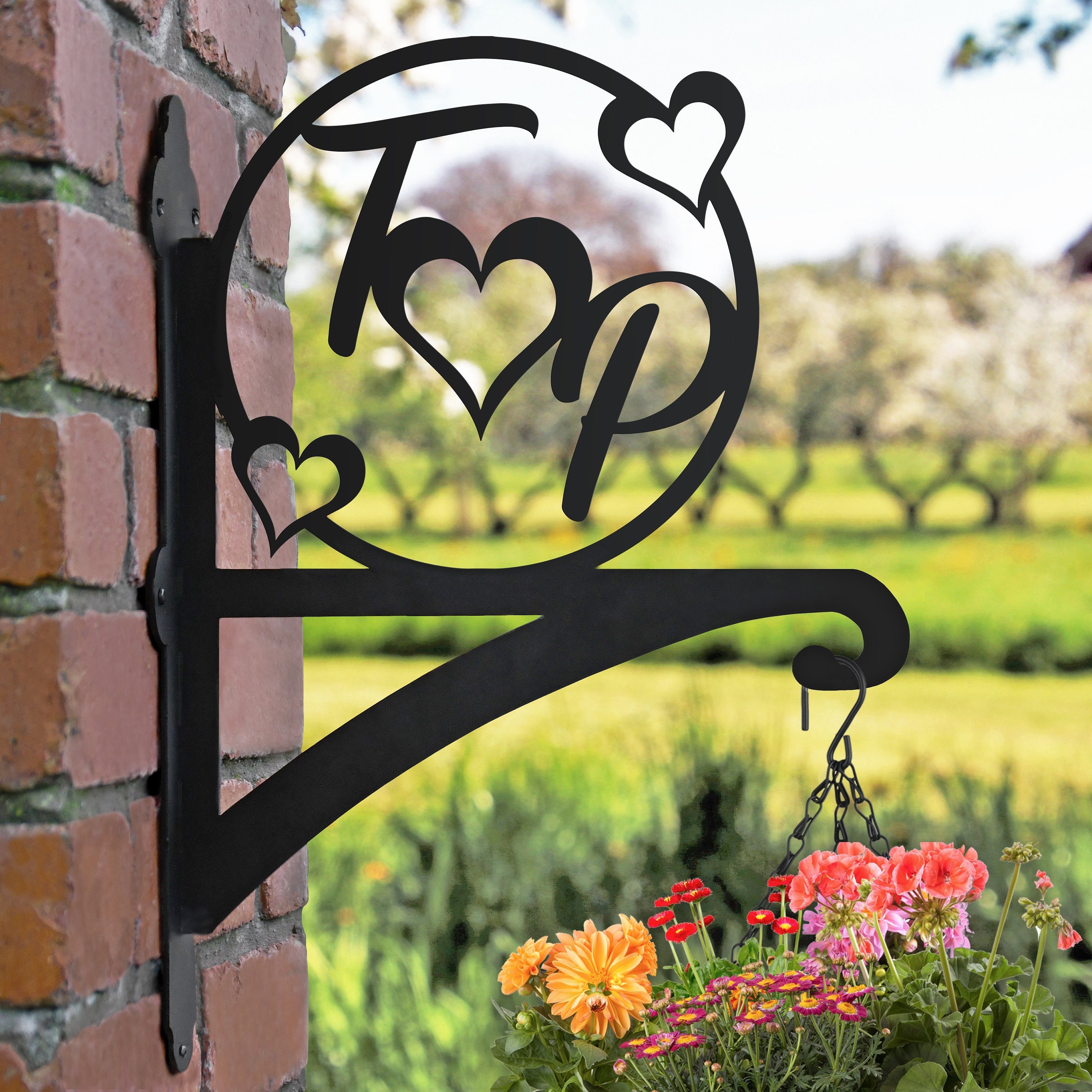 Personalised Love Heart Initial Hanging Basket Bracket Etsy Uk